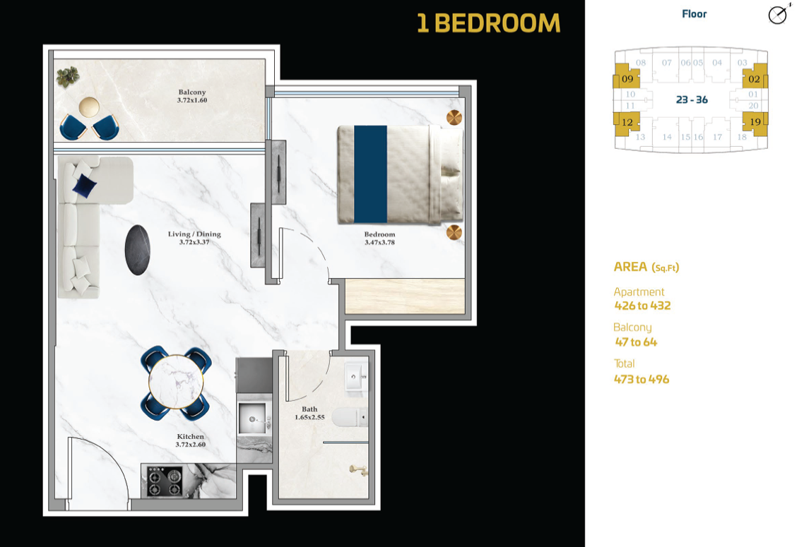Types: Studios, 1BR, 2BR, 3BR + Premium Office Spaces