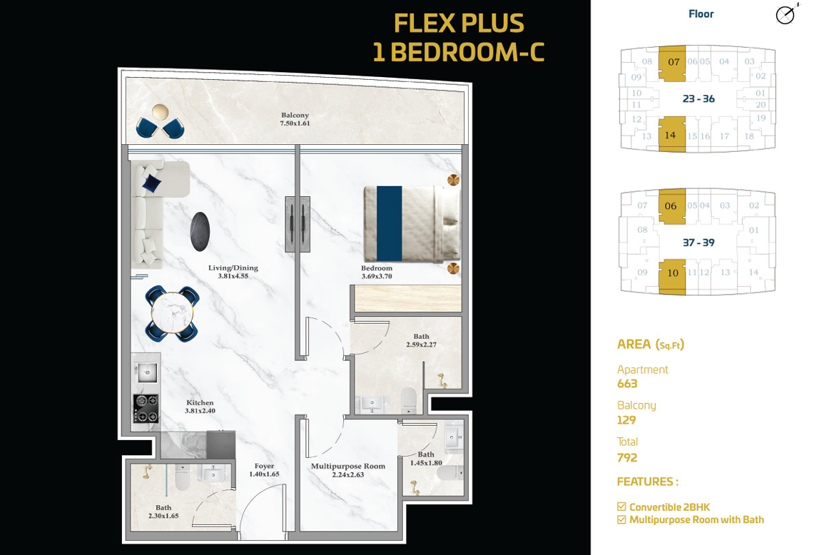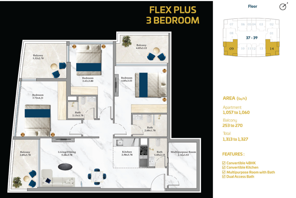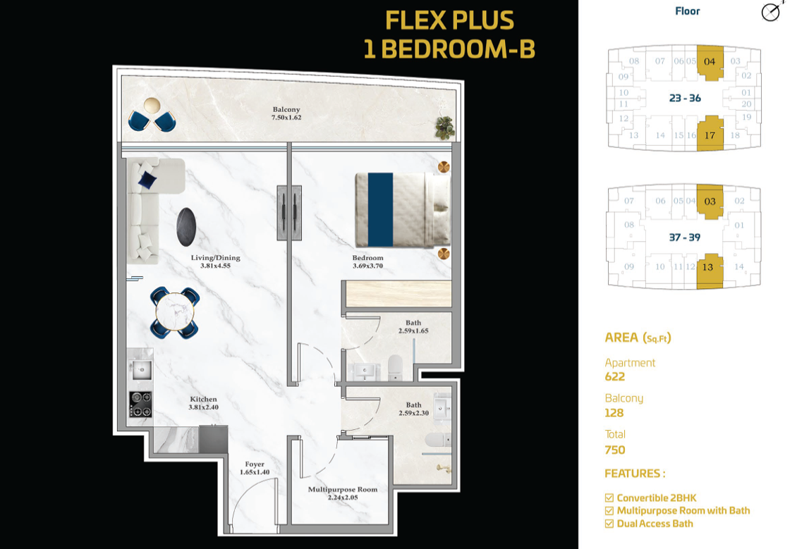 Design Ethos: Convertible layouts, fully furnished interiors, and multifunctional smart spaces designed for modern professionals and families