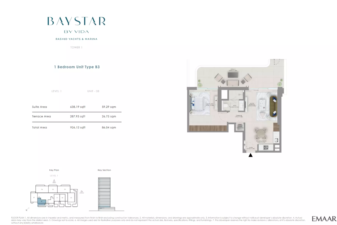Baystar by Vida is the first-ever Vida-branded residential project in Mina Rashid, Dubai. It embodies the signature Vida ethos—playful sophistication, wellness-focused spaces, and marina-side tranquility. With direct access to the marina promenade, landscaped courtyards, and luxury amenities, Baystar offers a lifestyle where the pulse of the city softens into the embrace of the sea.