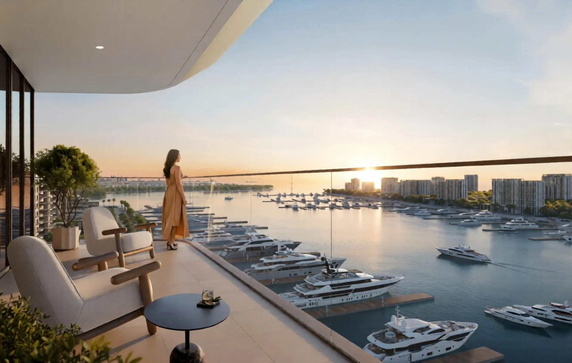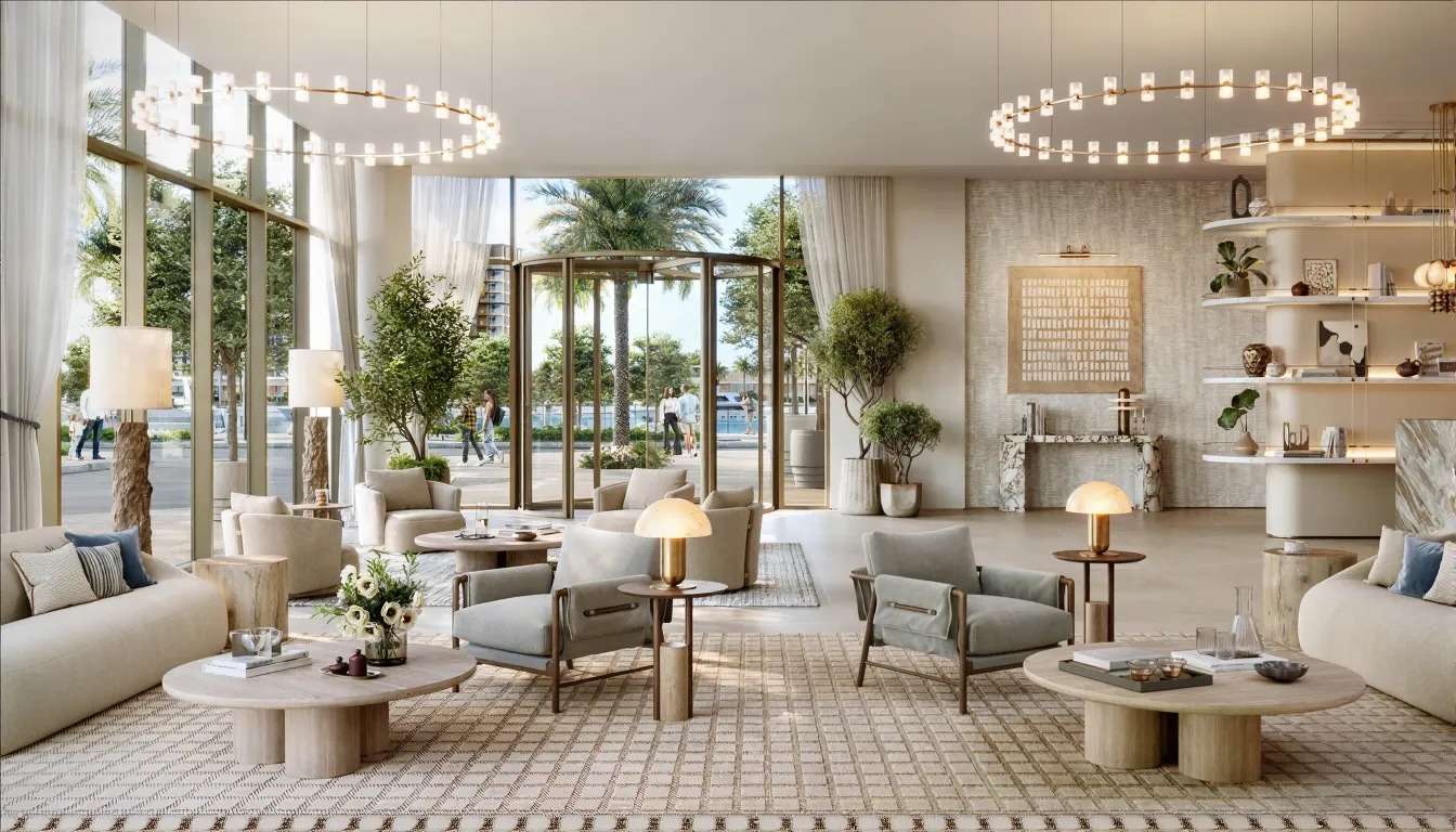 Design Ethos: Contemporary marina-inspired interiors, neutral palettes, wellness zones, and sunlit layouts