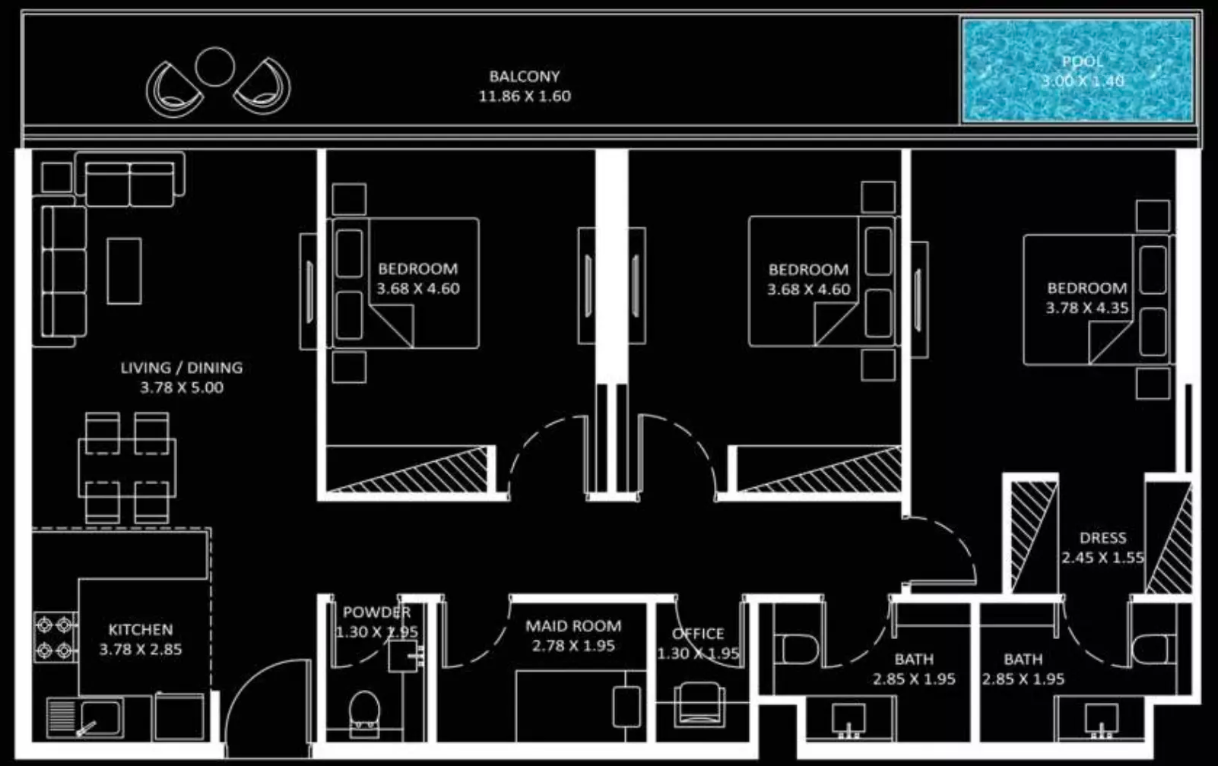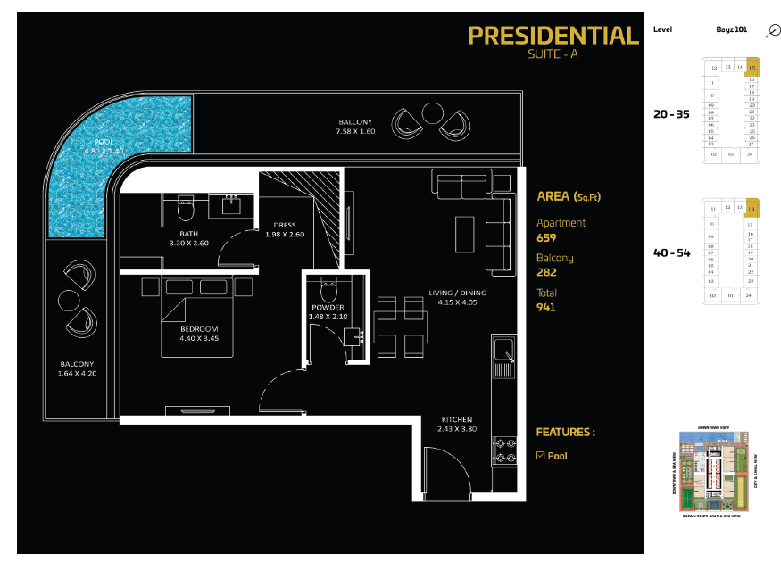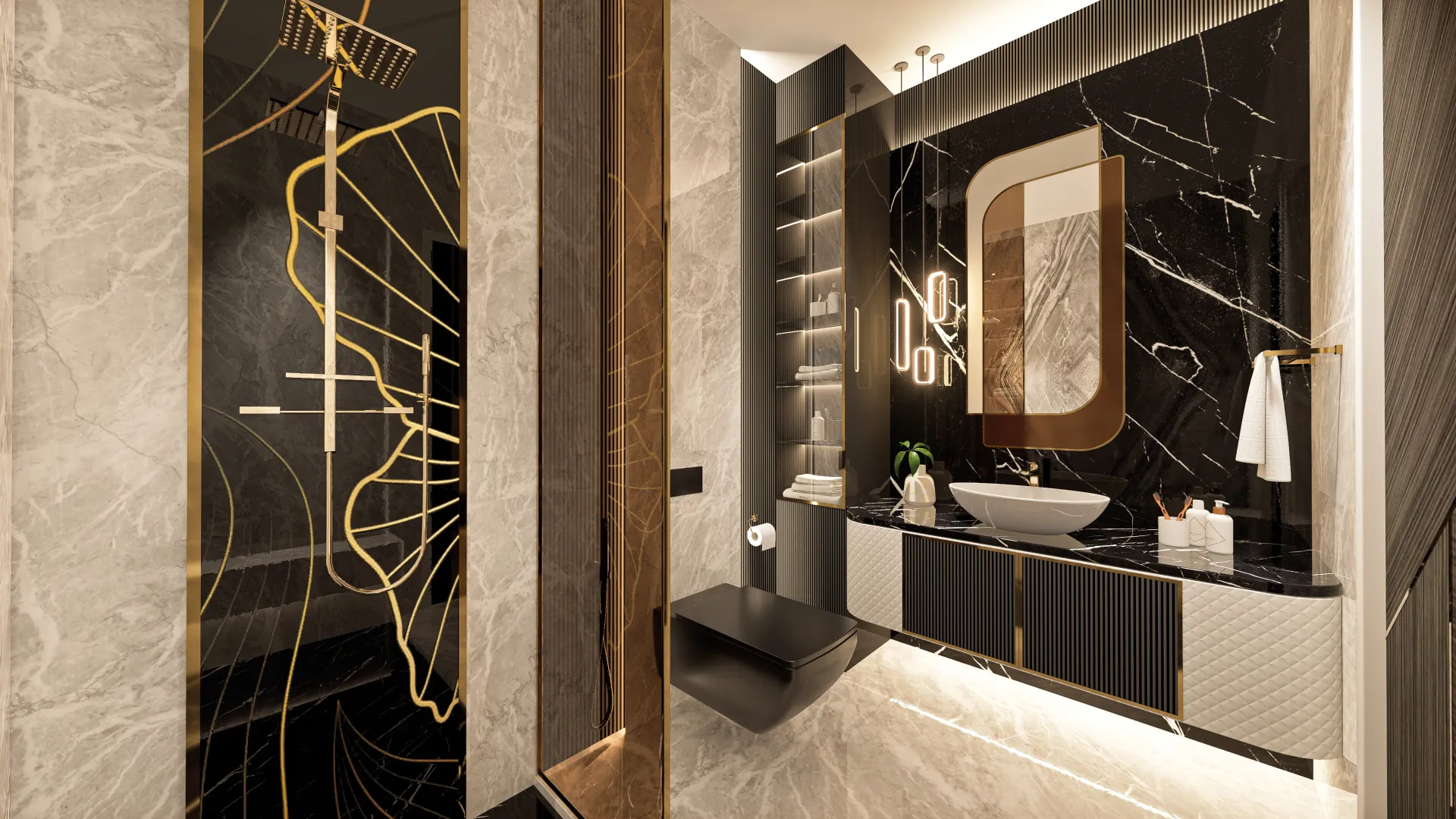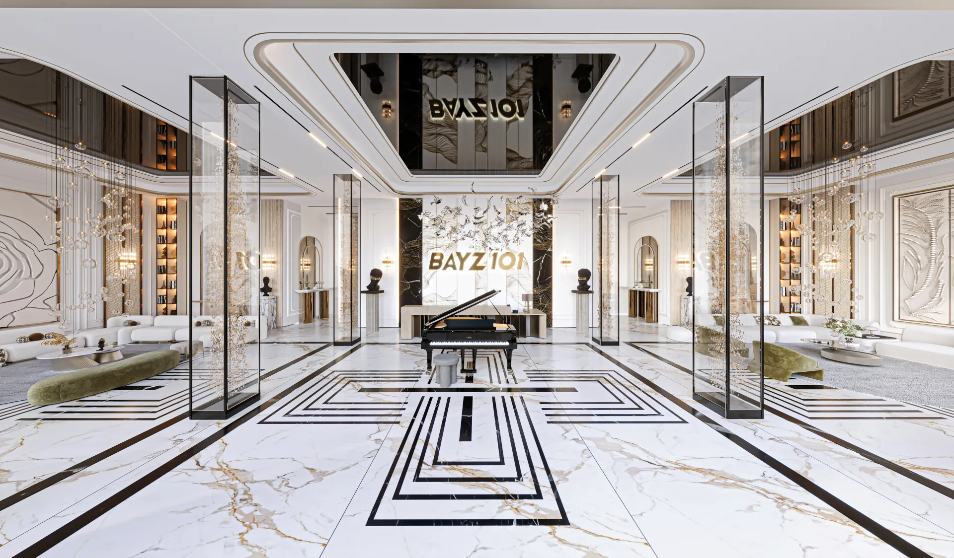 Design Ethos: Contemporary luxury interiors, panoramic glass façades, and elegant finishes