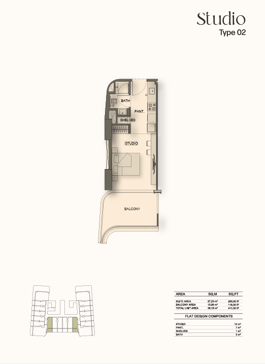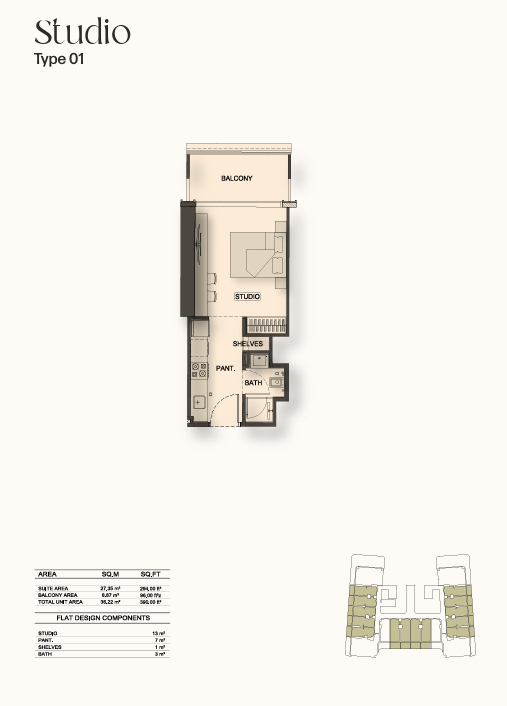 Types: Studios & 1BR apartments