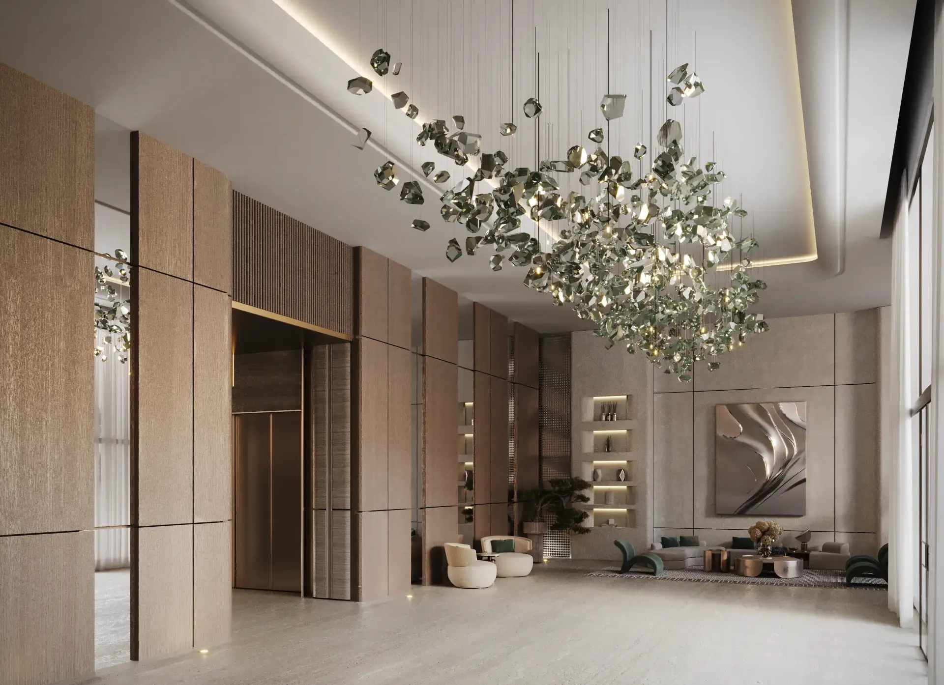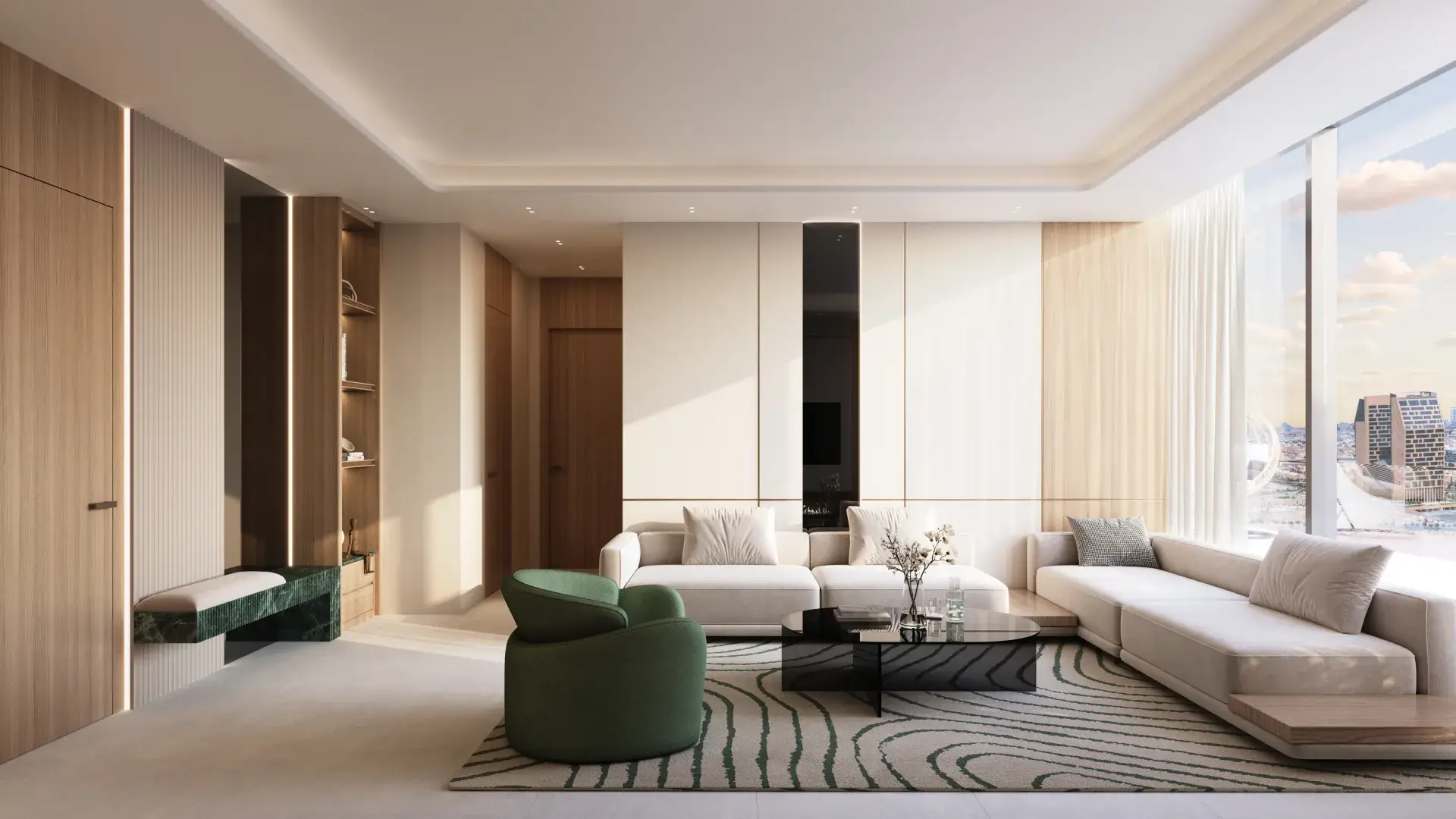 Design: Contemporary architecture with luxury interiors, panoramic views, and Binghatti’s signature angular design