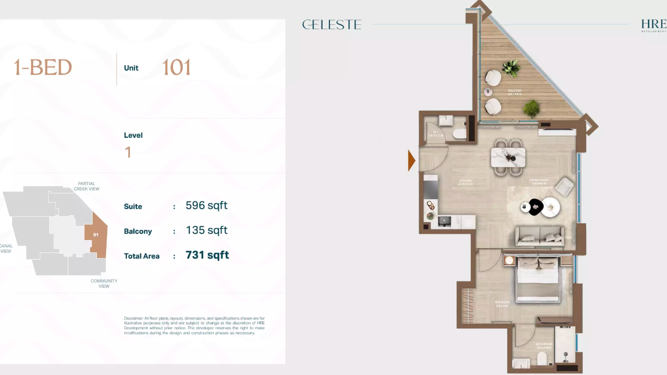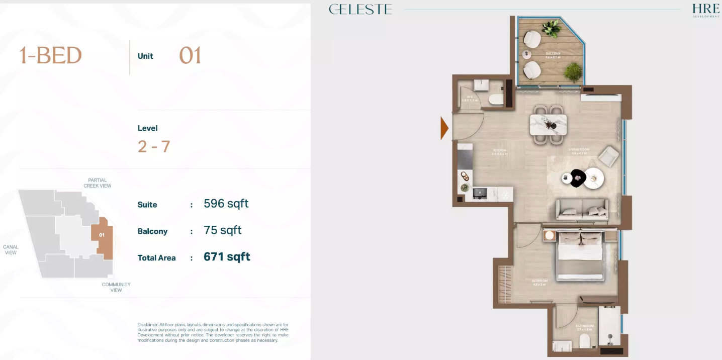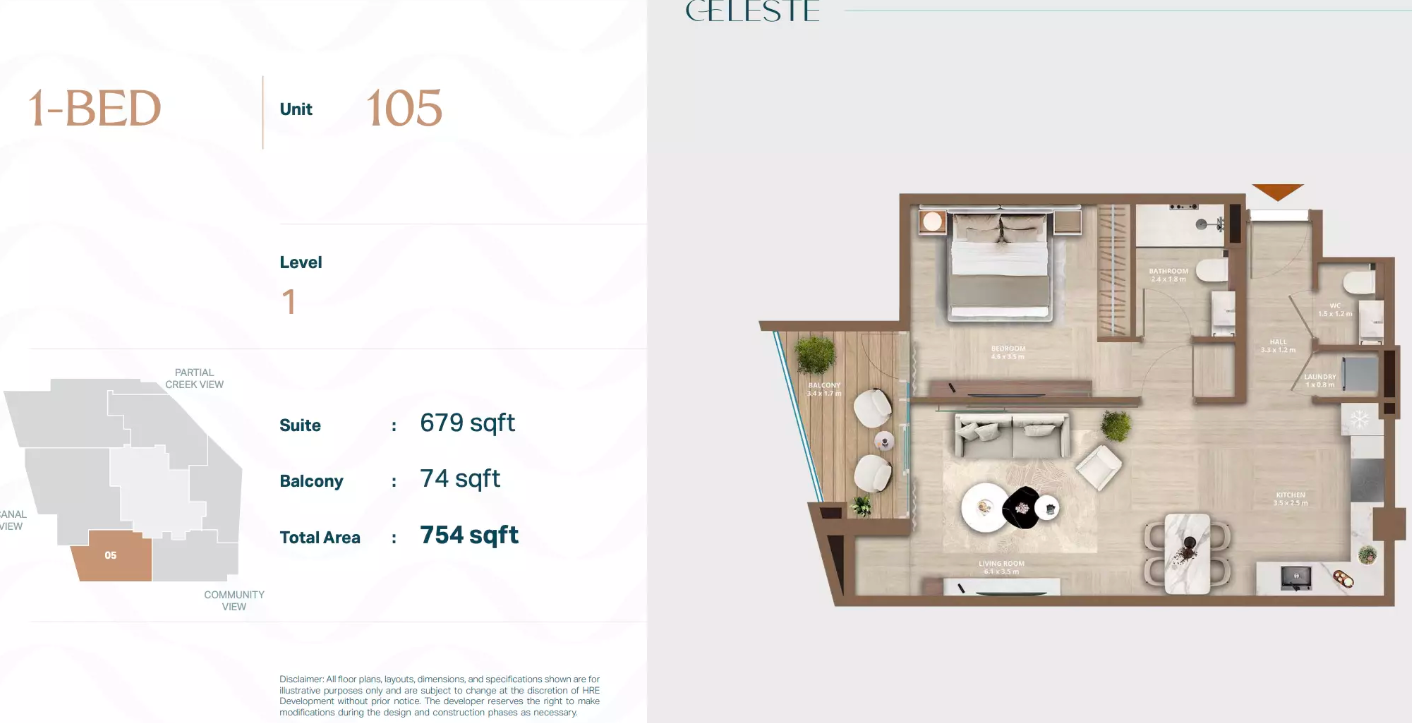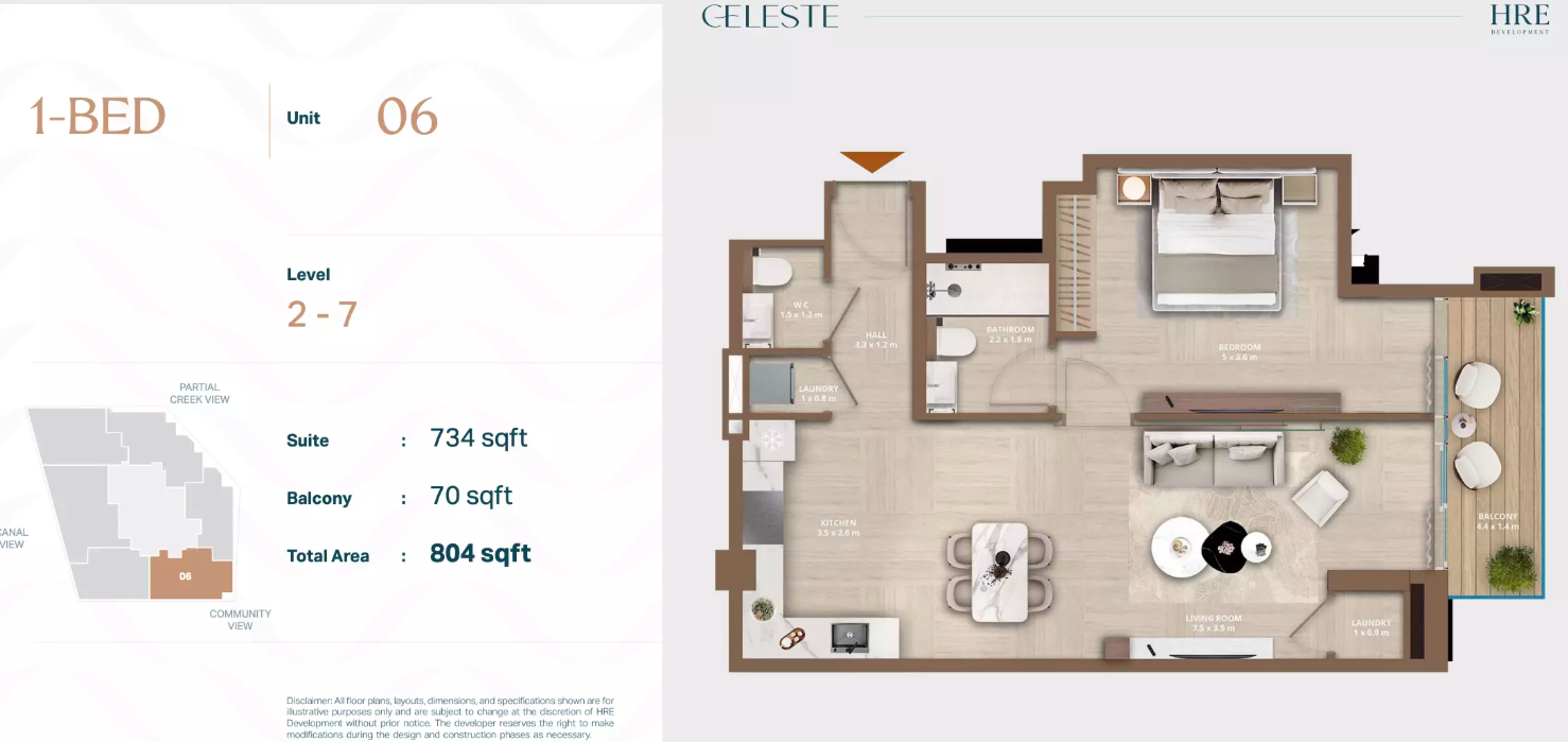 Celeste is a boutique mid-rise residential tower designed for privacy, elegance, and modern comfort. With only 44 residences, this development offers a rare blend of exclusivity and smart-enabled living. Its architecture emphasizes clean lines, warm palettes, and light-filled interiors—creating a serene retreat along Dubai’s Al Jaddaf Waterfront.