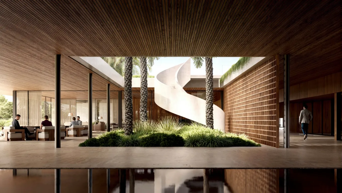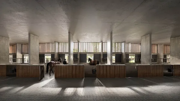 Design Ethos: Equestrian-inspired architecture, earthy palettes, natural textures, and open-plan living