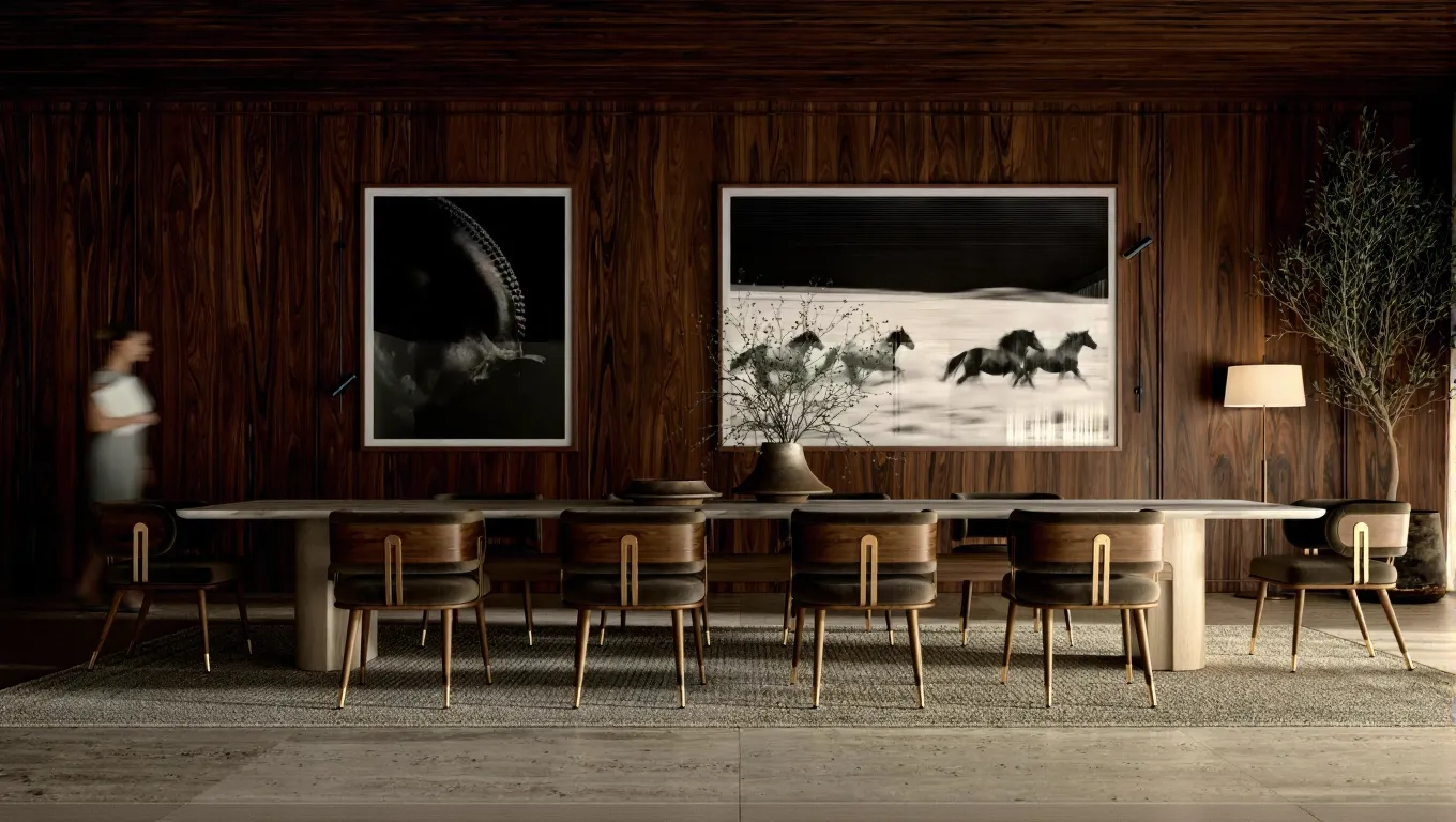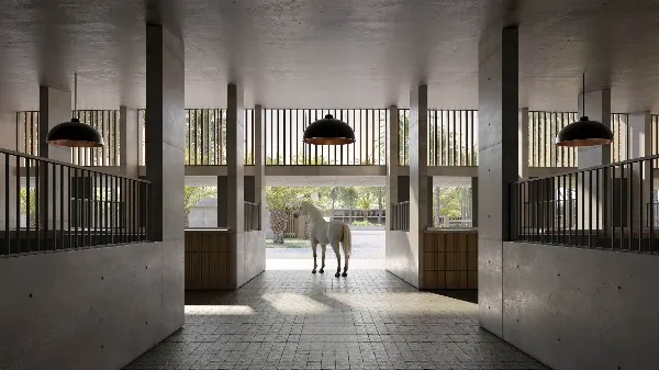 Design Ethos: Equestrian-inspired architecture, earthy palettes, natural textures, and open-plan living