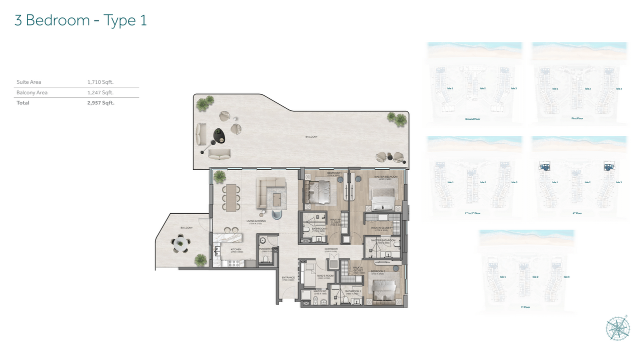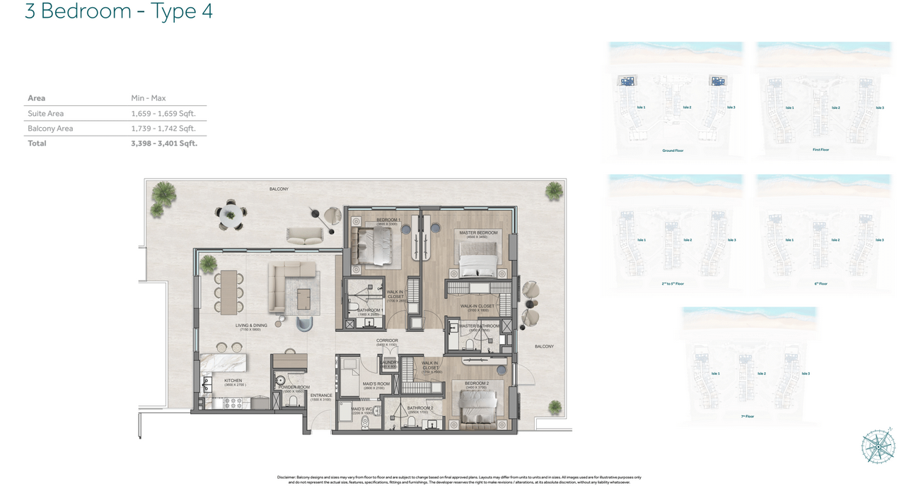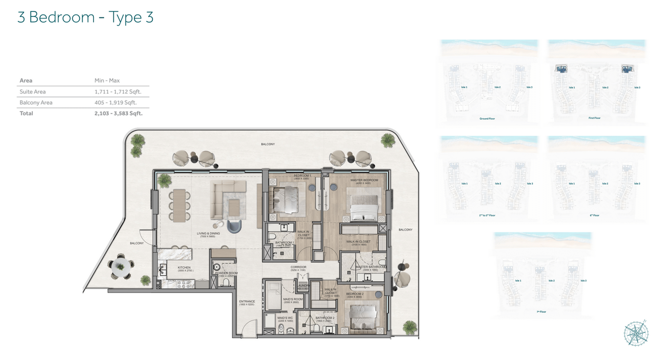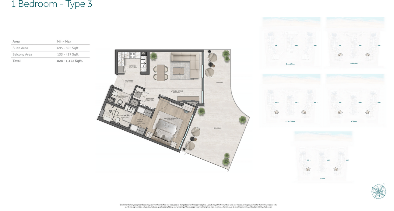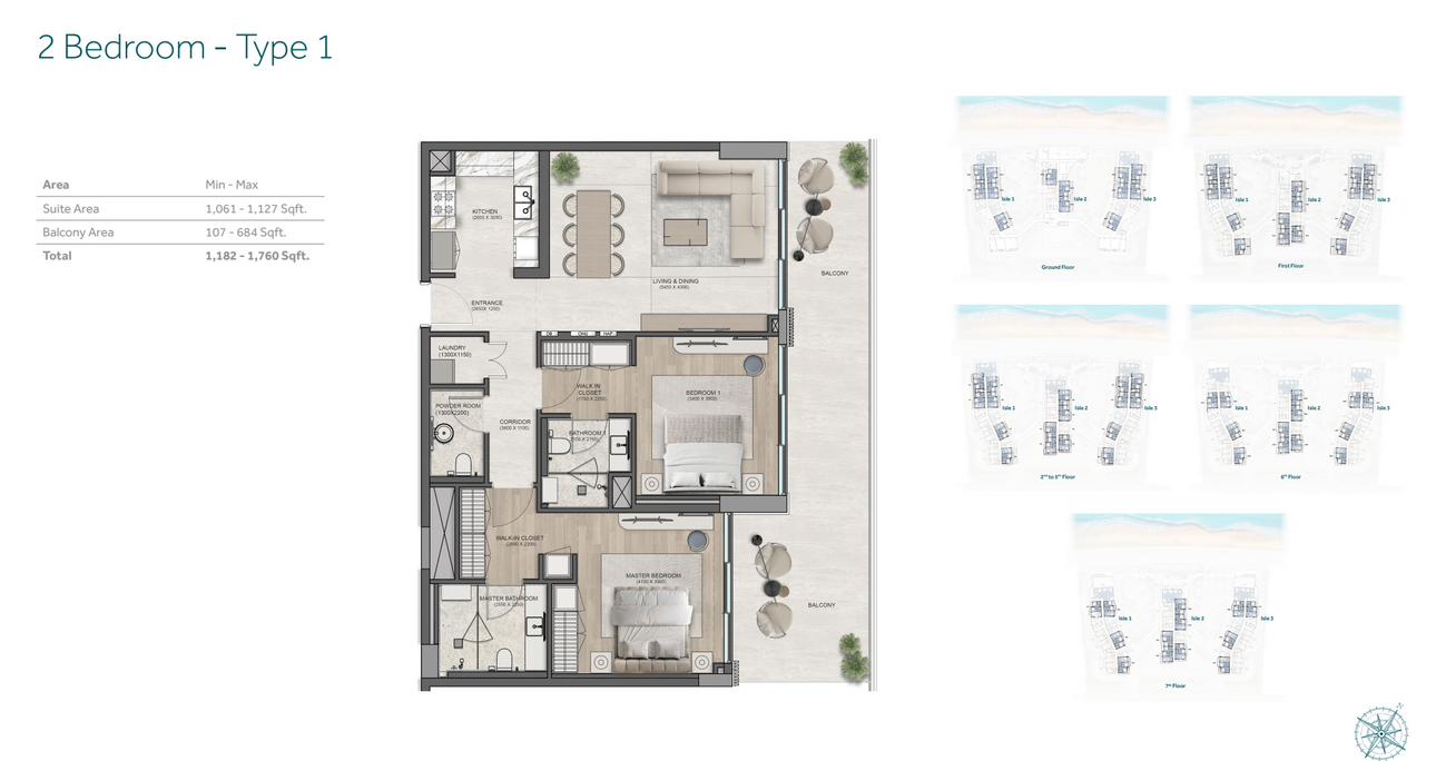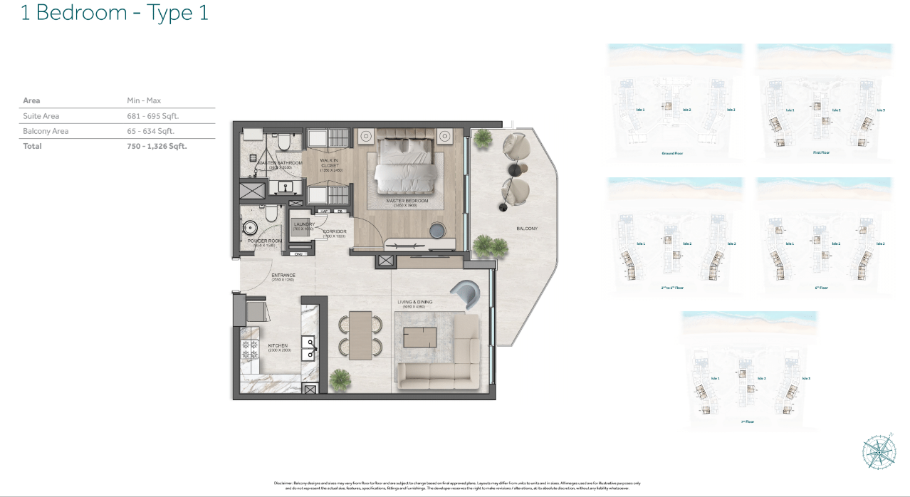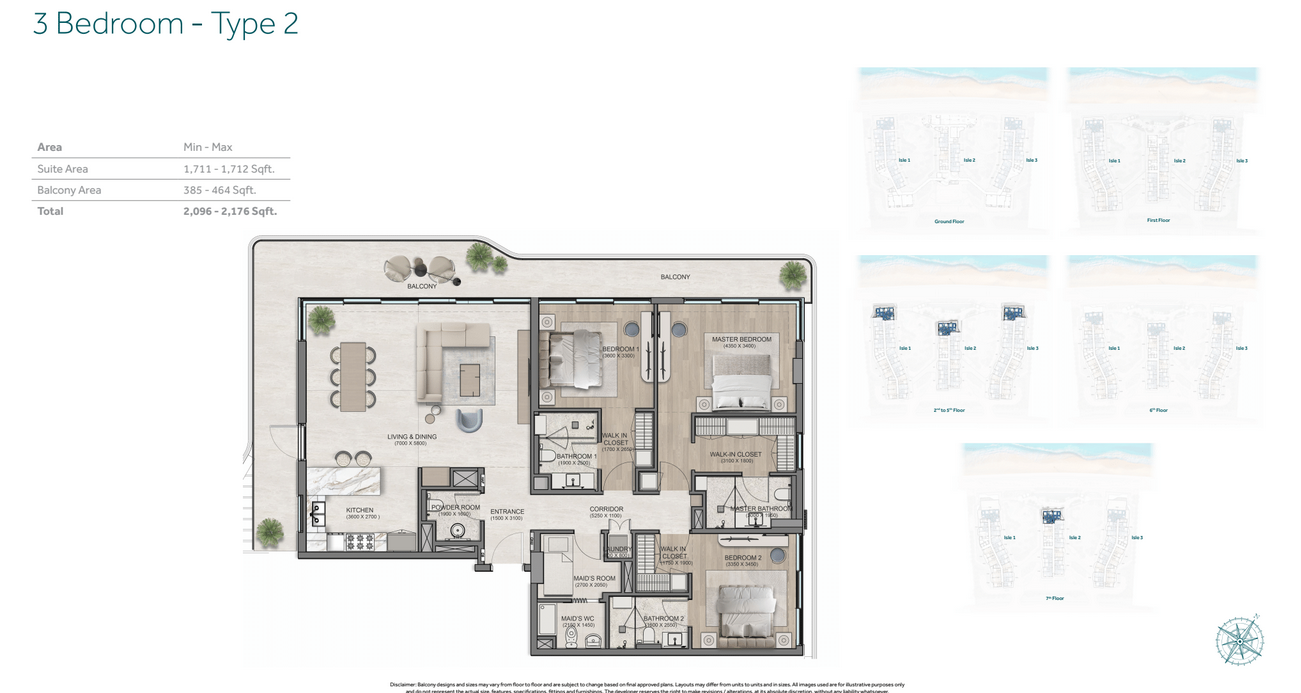 | Layout type | Size (sqft) | Bathrooms | Price (AED) | Floor plan |