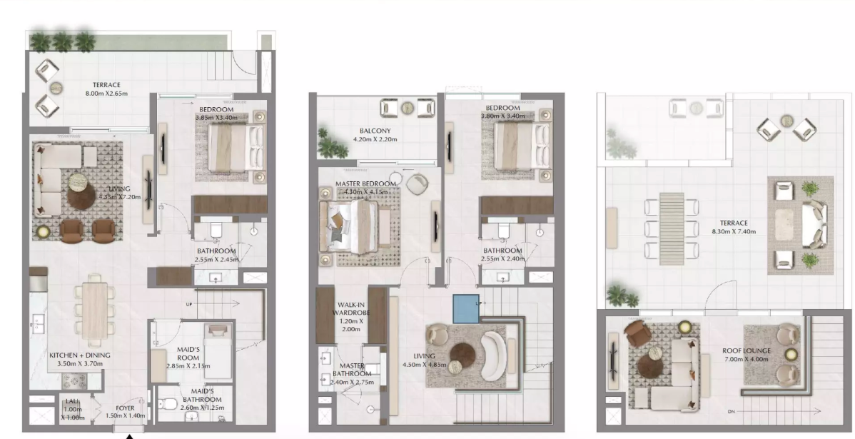 Types: 1BR, 2BR, 3BR apartments; boutique 3BR townhouses