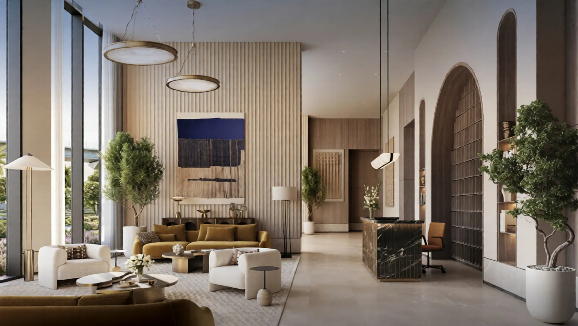 Inspired by the prestige of Palace Hotels & Resorts, Lyvia by Palace is a 47-storey branded tower in the Green Gate District of Dubai Creek Harbour. It blends nature-infused design, luxury finishes, and panoramic lagoon views to create a serene yet vibrant lifestyle destination.