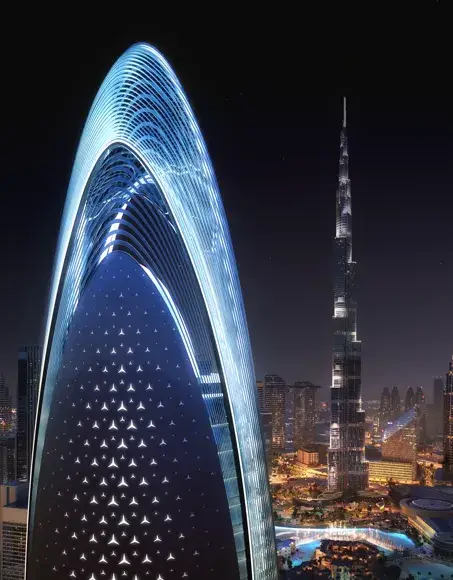 Mercedes-Benz Places is the world’s first Mercedes-Benz branded residence, developed by Binghatti in partnership with the iconic automotive brand. This hyper-tower introduces a new paradigm of design, technology, and lifestyle, echoing the sleek aesthetics and innovation of Mercedes-Benz automobiles.
