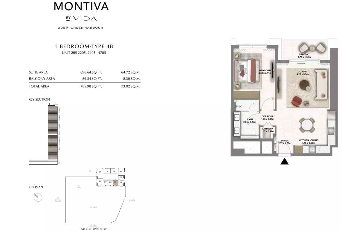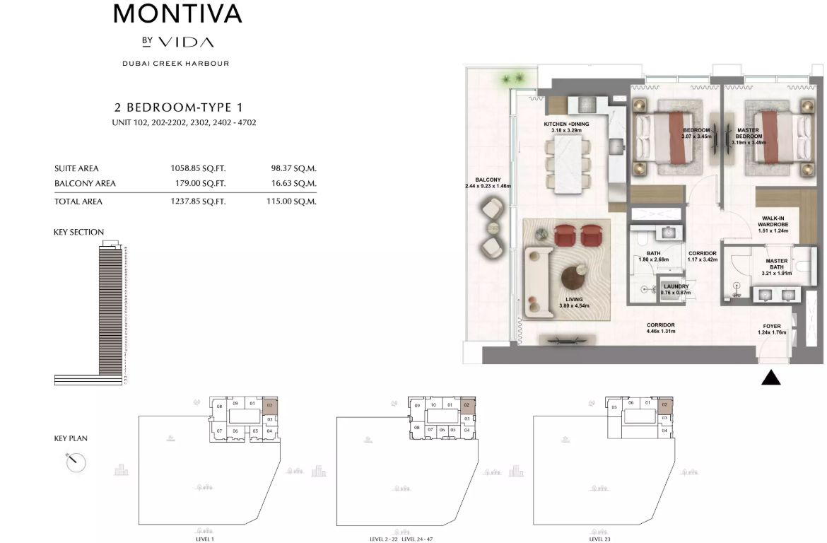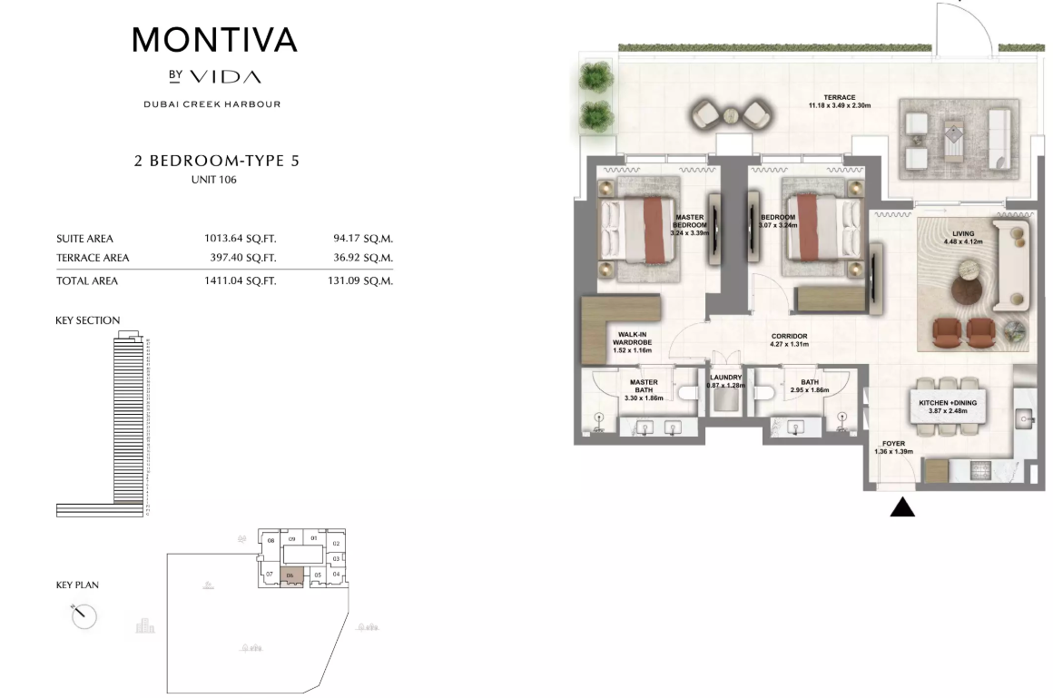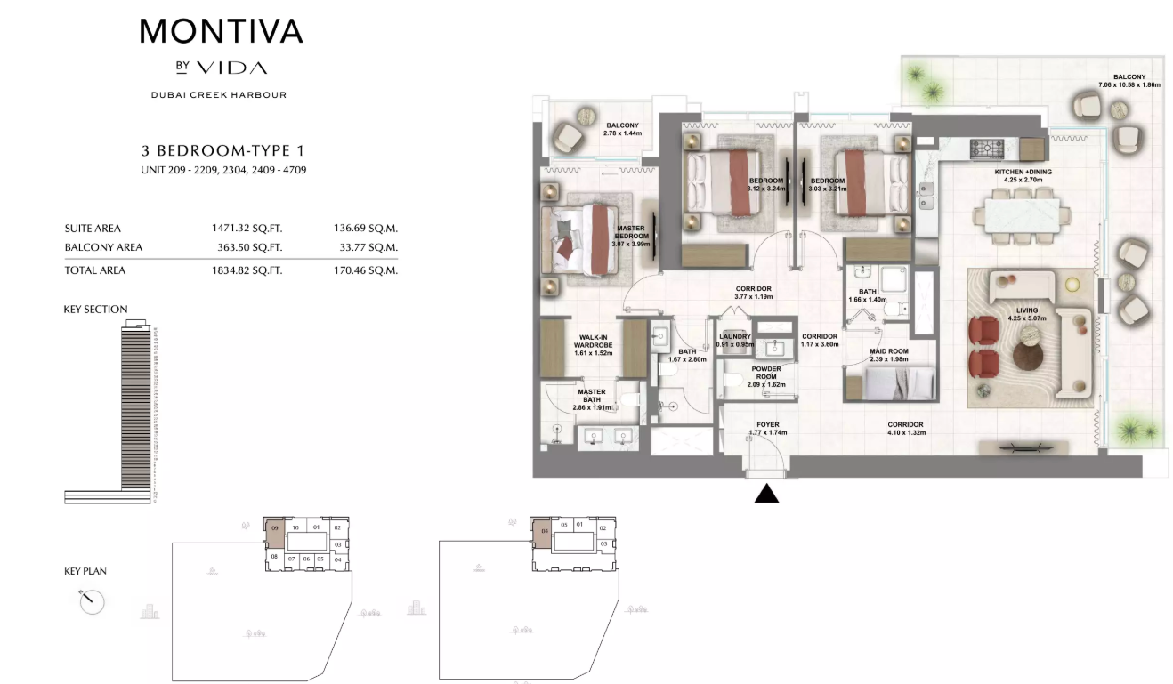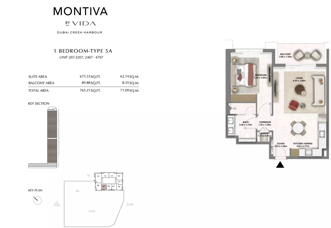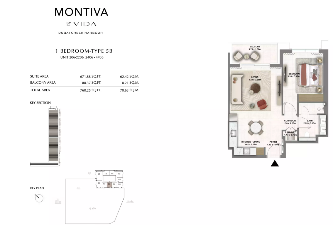 Montiva by Vida is a 50-storey branded residential tower rising in the prestigious Green Gate district of Dubai Creek Harbour. Inspired by Vida’s signature bold and contemporary design ethos, Montiva blends upscale urban living with nature-infused serenity. Surrounded by lush greenery, botanical escapes, and panoramic skyline views, Montiva offers residents a lifestyle that is both refreshing and connected.