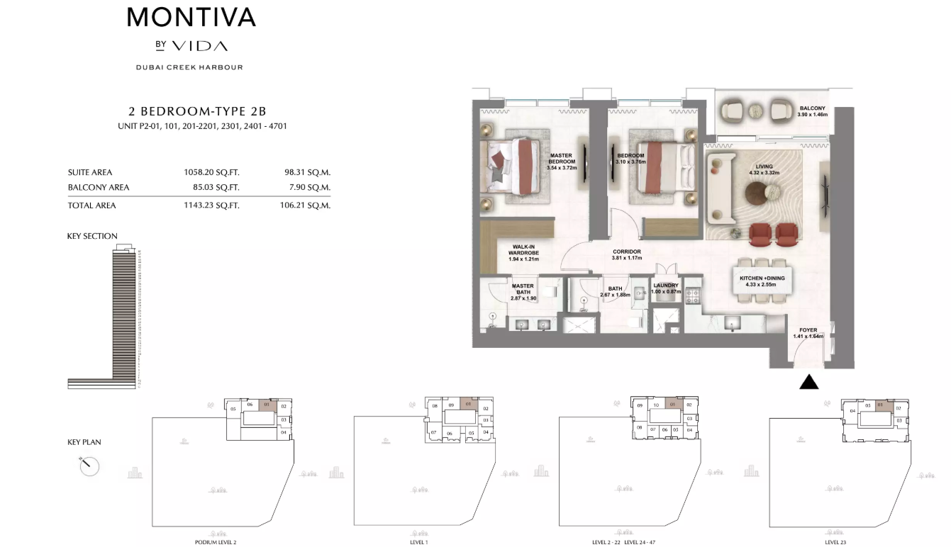Types: 1BR, 2BR, 3BR apartments