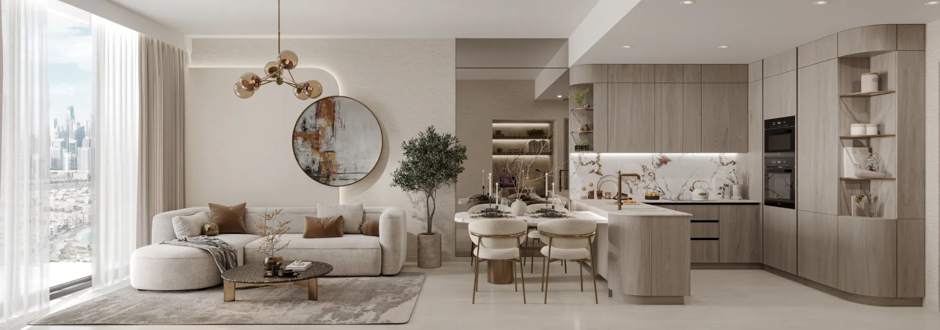 Design Ethos: Minimalist interiors, soft neutral tones, curated textures, and modern finishes
