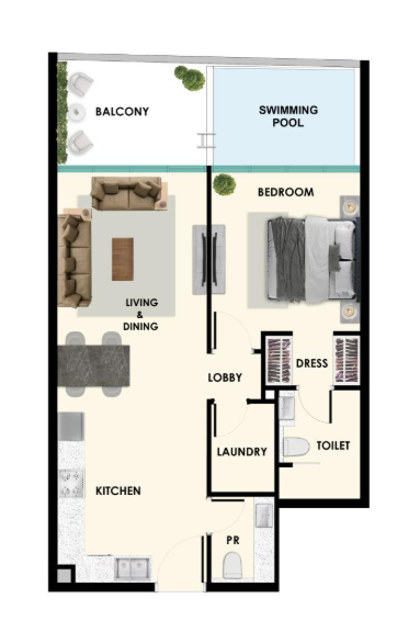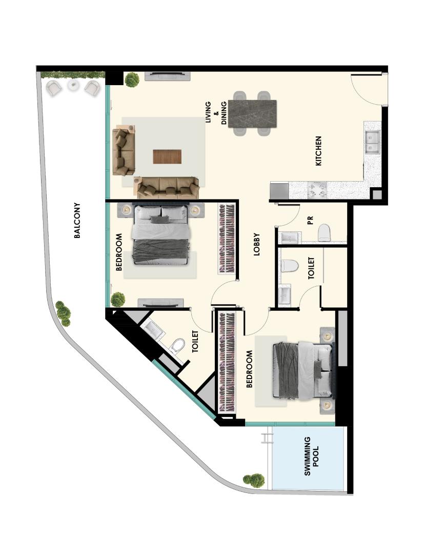 Lifestyle Features: Private pools in select units, expansive leisure deck, water features, and wellness amenities