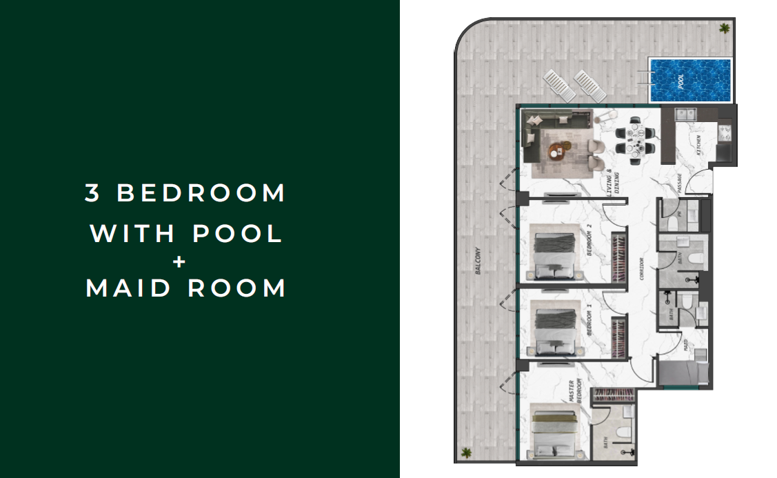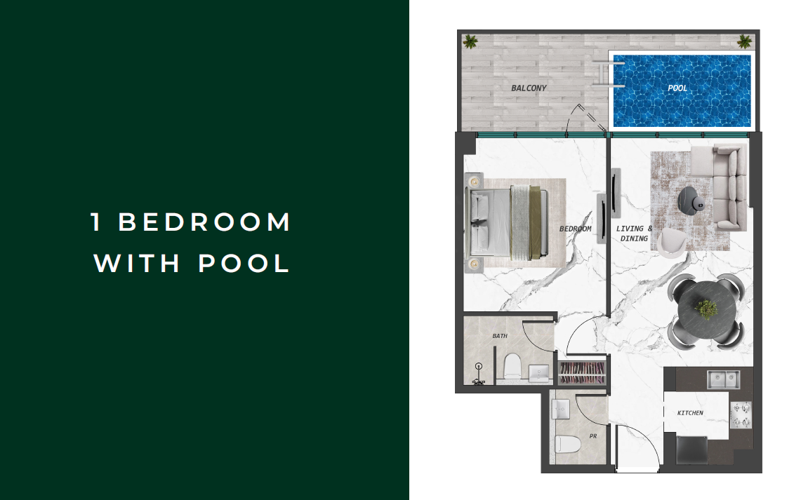 Lifestyle Features: Private pools in select units, expansive leisure deck, water features, and wellness amenities