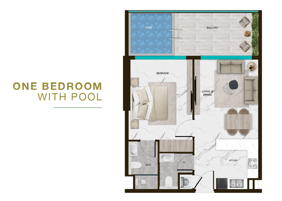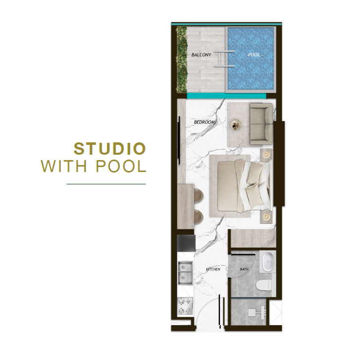 Types: Studios, 1BR & 2BR apartments