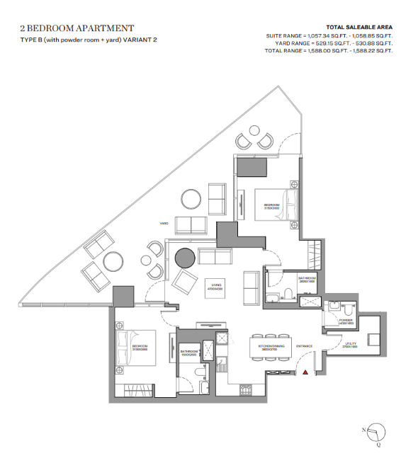 Configuration: 46–47 storey residential tower