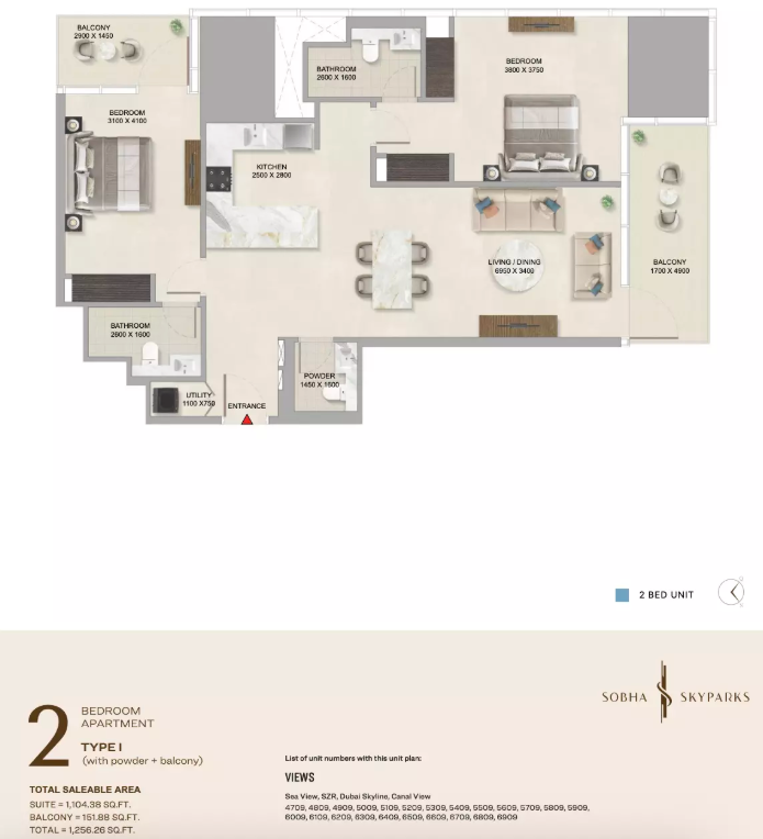 Types: 1BR, 2BR, 3BR, 4BR, Duplexes & Penthouses