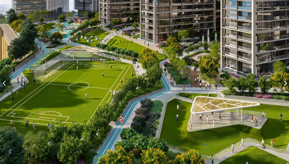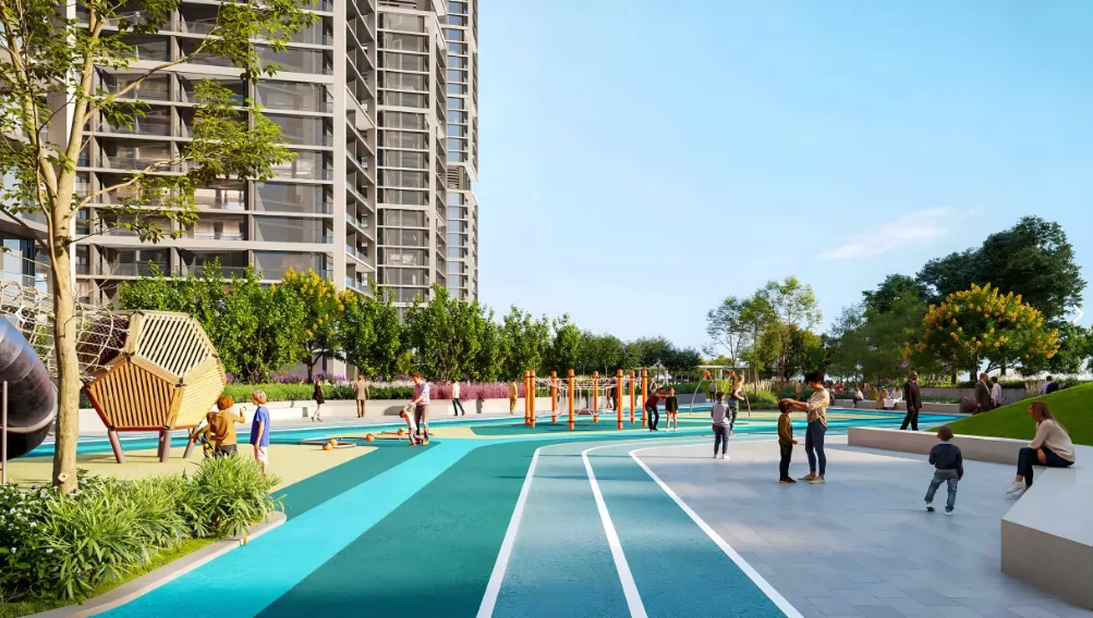 Design Ethos: Glass façade architecture, serene palettes, landscaped podium gardens, and contemporary detailing