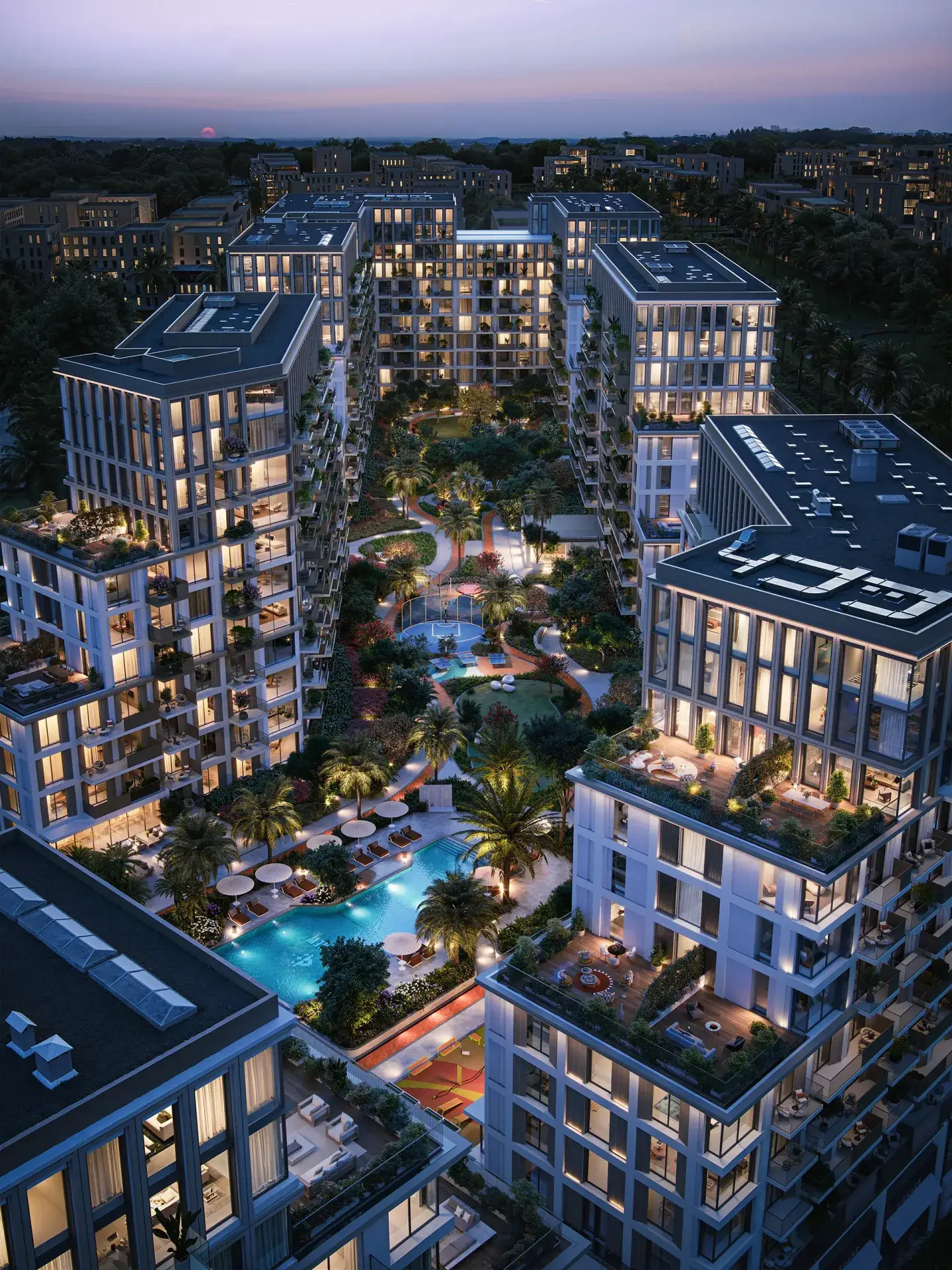 Design Ethos: Sleek facades, communal terraces, and nature-integrated interiors