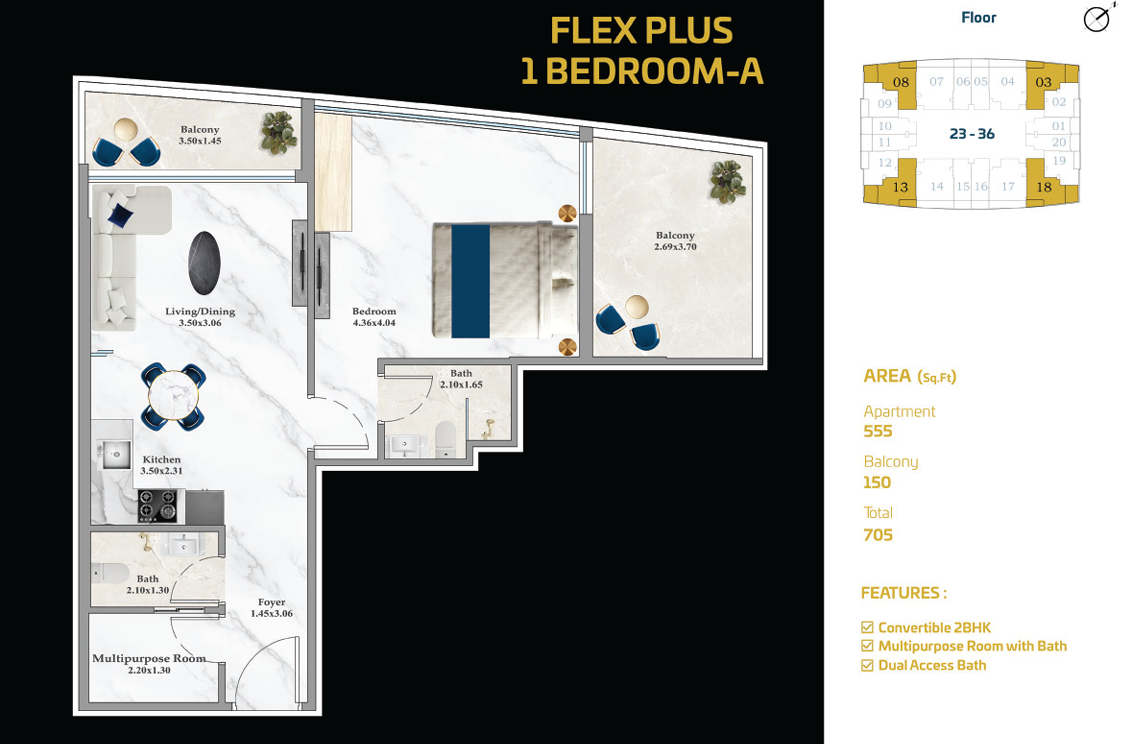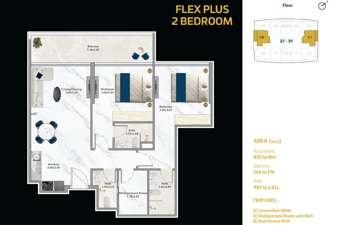 Design Ethos: Convertible layouts, fully furnished interiors, and multifunctional smart spaces designed for modern professionals and families