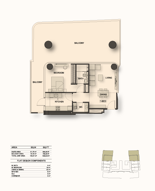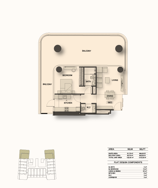 Types: Studios & 1BR apartments