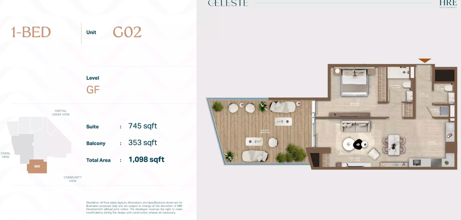 Celeste is a boutique mid-rise residential tower designed for privacy, elegance, and modern comfort. With only 44 residences, this development offers a rare blend of exclusivity and smart-enabled living. Its architecture emphasizes clean lines, warm palettes, and light-filled interiors—creating a serene retreat along Dubai’s Al Jaddaf Waterfront.