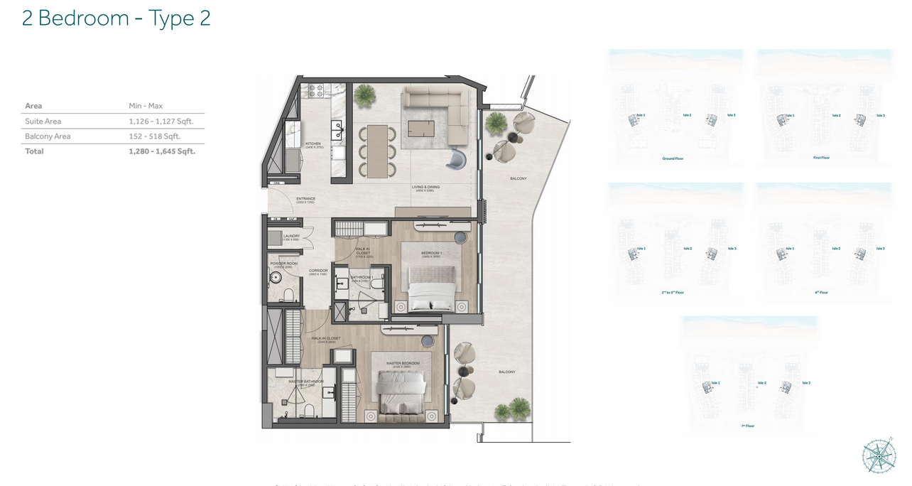 | Layout type | Size (sqft) | Bathrooms | Price (AED) | Floor plan |