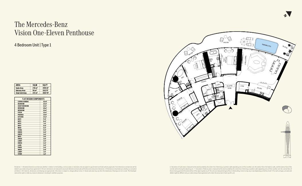 Types: 2BR, 3BR, 4BR apartments and penthouses
