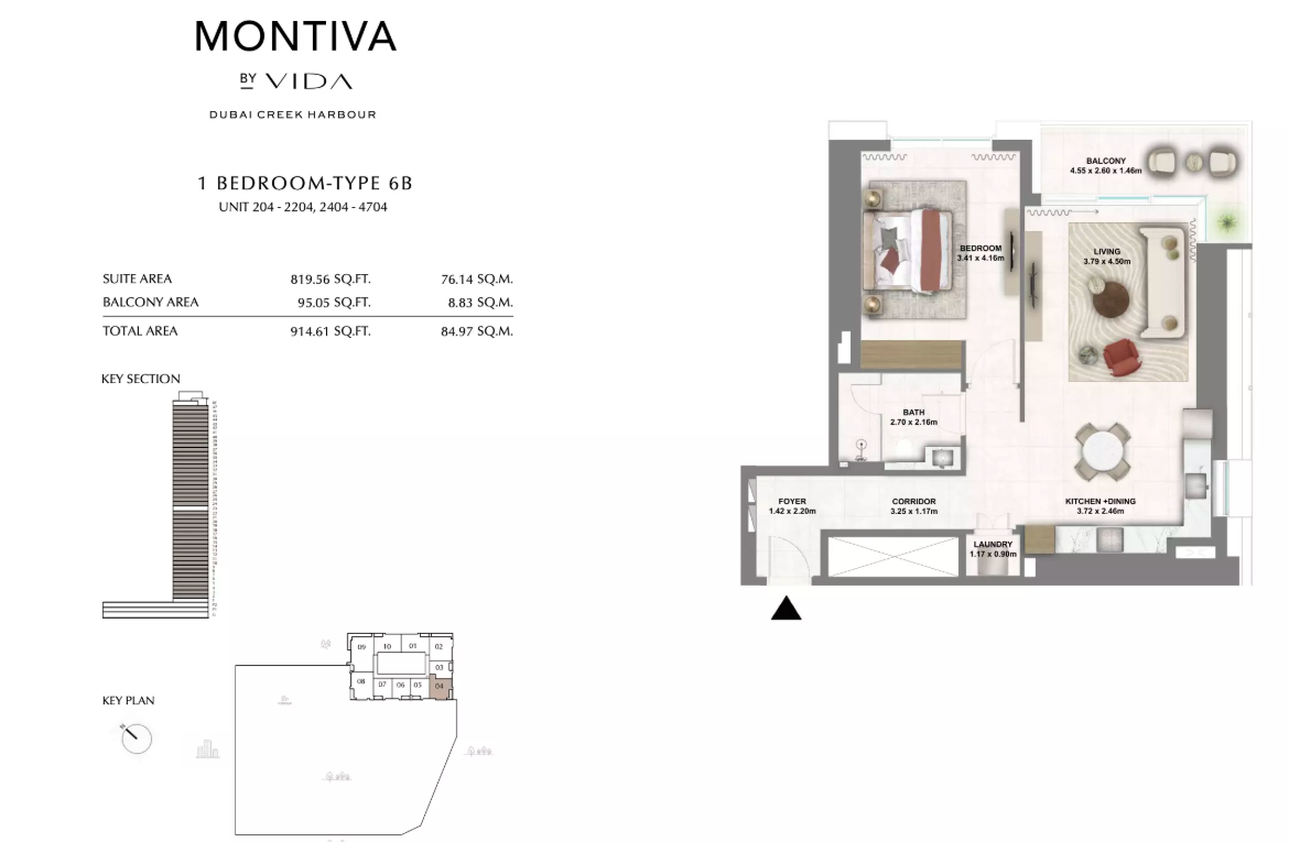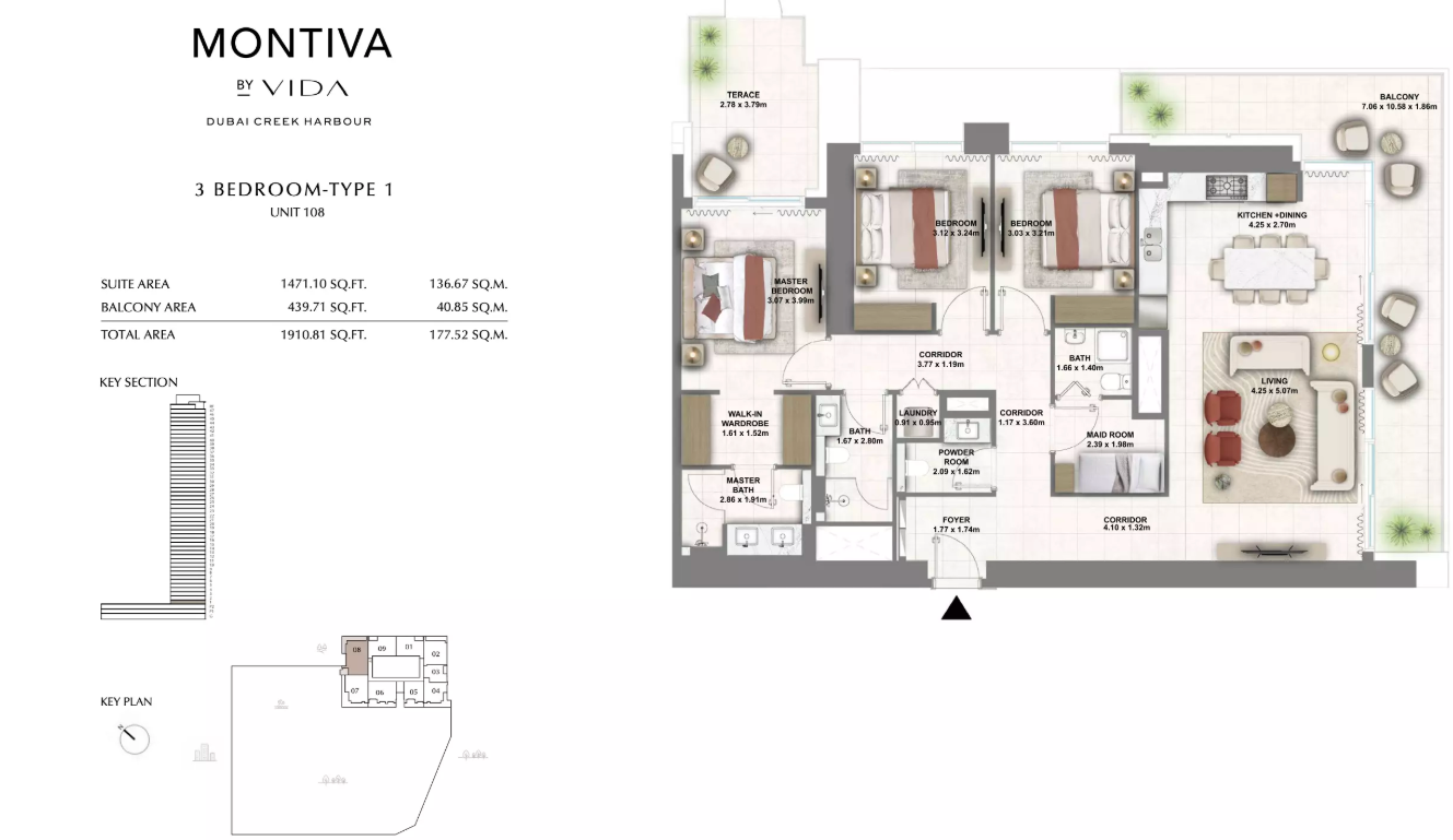 Montiva by Vida is a 50-storey branded residential tower rising in the prestigious Green Gate district of Dubai Creek Harbour. Inspired by Vida’s signature bold and contemporary design ethos, Montiva blends upscale urban living with nature-infused serenity. Surrounded by lush greenery, botanical escapes, and panoramic skyline views, Montiva offers residents a lifestyle that is both refreshing and connected.